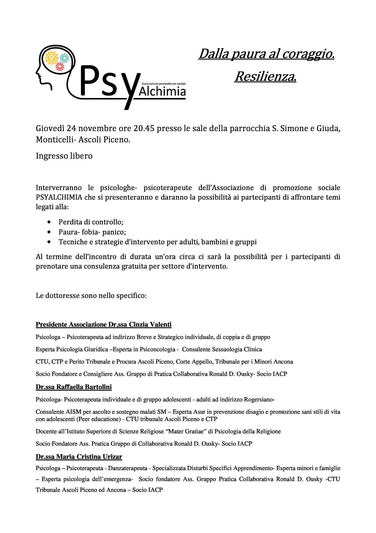 Dr.Cinzia Valenti Psicoterapeuta e Presidente Associazione Psy Alchimia
